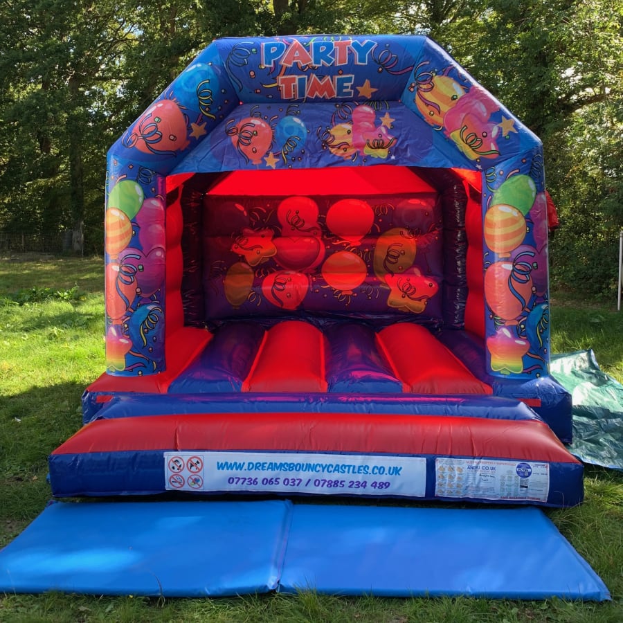 All our bouncy castles are provided with blower, safety mats and sandbags. If outside, our bouncy castles come with groundsheet and stakes. Please note that we will only set up outside on grassed areas and not tarmac, block paving, concrete etc.
