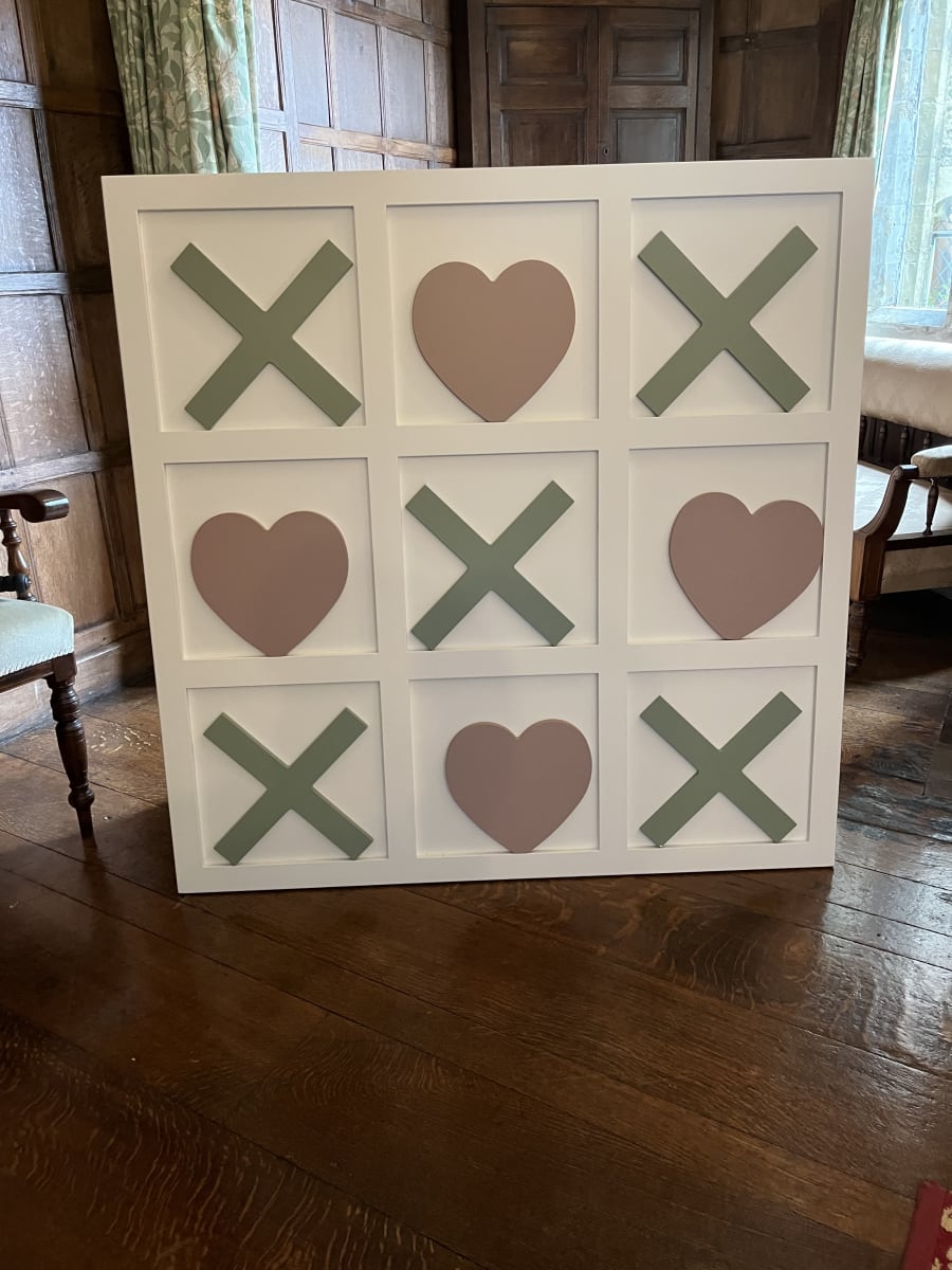 This wooden game can be hired with either hearts and kisses perfect for any wedding or naughts and crosses for other events.