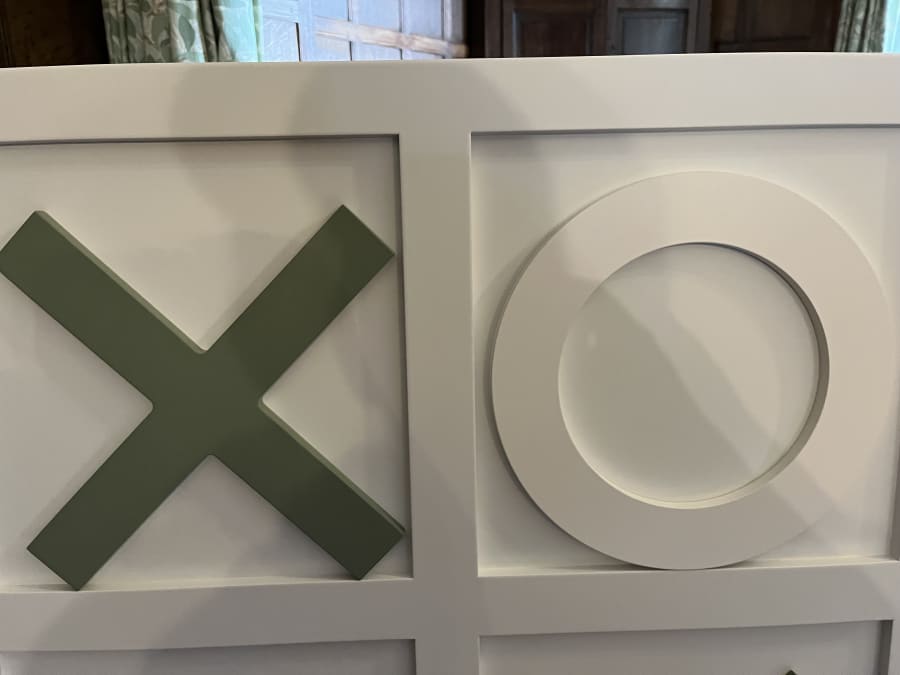 Standing 2ft tall, take turns to place either heart or cross in the square to create 3 in a row.