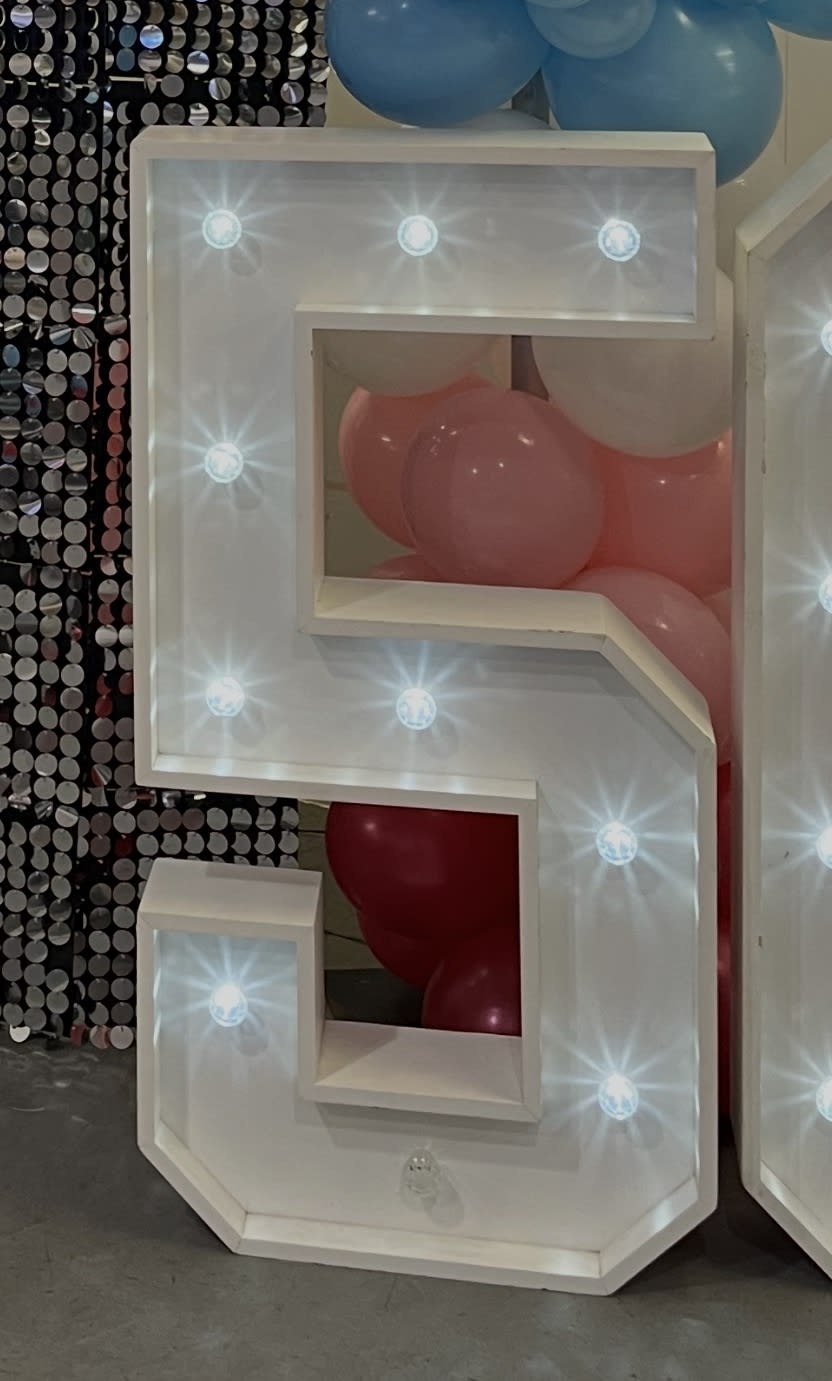 The White LED number 5 for hire makes any birthday celebration instantly memorable. This illuminated numeral is a bold photo prop, stage focal point, and party centerpiece. It delivers clean white light, strong visual impact, and stress-free setup so you get great photos and a standout atmosphere without the fuss. Ideal for milestone birthdays and themed parties, the White LED number 5 adds sparkle and polish to every shot. 📸