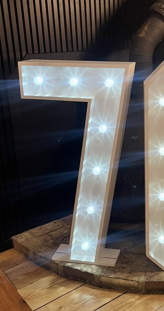 Ready to reserve? Book the White LED Number 7 for hire today and light up your celebration. 🔥
